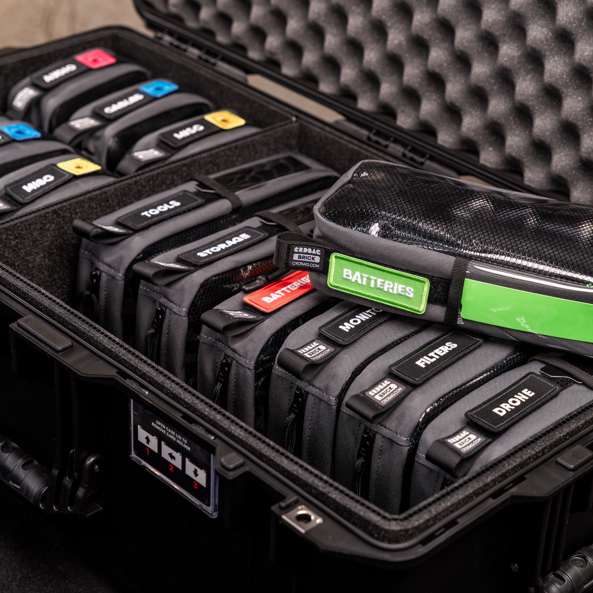 CRDBAG BRICK SERIES i aktion—passar sömlöst in i en Peli 1615 Air med TrekPak. Designad för maximal förvaring och perfekt organisering, håller BRICK din utrustning säker och redo för varje uppdrag.